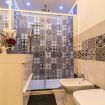 Il bagno privato è interno alla camera dispone di ampio box doccia con soffione a pioggia e doccino, dispenser per lo shampoo, impianto luci per la cromoterapia, un comodo lavabo e bidet.