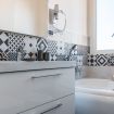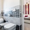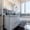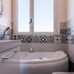 Il bagno privato è interno alla camera ed è completo di vasca da bagno con getti idromassaggio e ampio box doccia con soffione a pioggia e doccino, dispenser per lo shampoo, impianto luci per la cromoterapia. Un comodo lavabo e bidet.