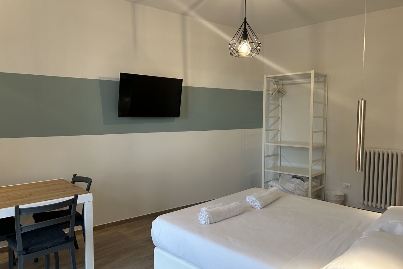Il monolocale dispone di un comodo armadio a giorno e di una smart TV con Netflix, Prime Video e Disney Plus. Il bagno, dotato di doccia con cromoterapia e bidet, include anche una lavatrice, uno stendibiancheria e un ferro da stiro.