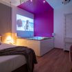 La camera è dotata di un grande letto King size extra (180x210) con un comodissimo materasso Dorelan. Di fianco al letto una splendida Jacuzzi rettangolare per due persone con cromoterapia e impianto audio bluetooth.