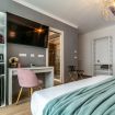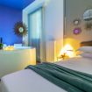 La camera è completamente domotica! Potrai controllare con comando vocale luci, tapparelle, tv, aria condizionata, creare atmosfere romantiche, chiedere musica, sveglie, informazioni, meteo e tanto altro al nostro Room Computer. Per i meno tecnologici invece sono sempre disponibili i tradizionali interruttori. Le tapparelle permettono di oscurare completamente la camera per chi non ama infiltrazioni di luce quando dorme.